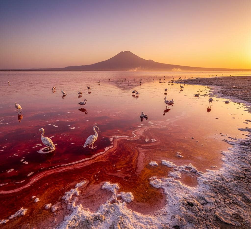Lake Natron lies in a vast, open silence, watched over by the towering presence of Ol Doinyo Lengai, the Mountain of God. Its waters shimmer in shifting shades of pink and red, where thousands of flamingos gather like moving petals across the lake. This is a place shaped by extremes. Heat, salt, and the deep rhythm of the earth. The air carries the scent of minerals, the ground crunches underfoot, and the horizon feels endless. Here, nature writes in bold lines, and every view is a reminder of how powerful and fragile beauty can be.